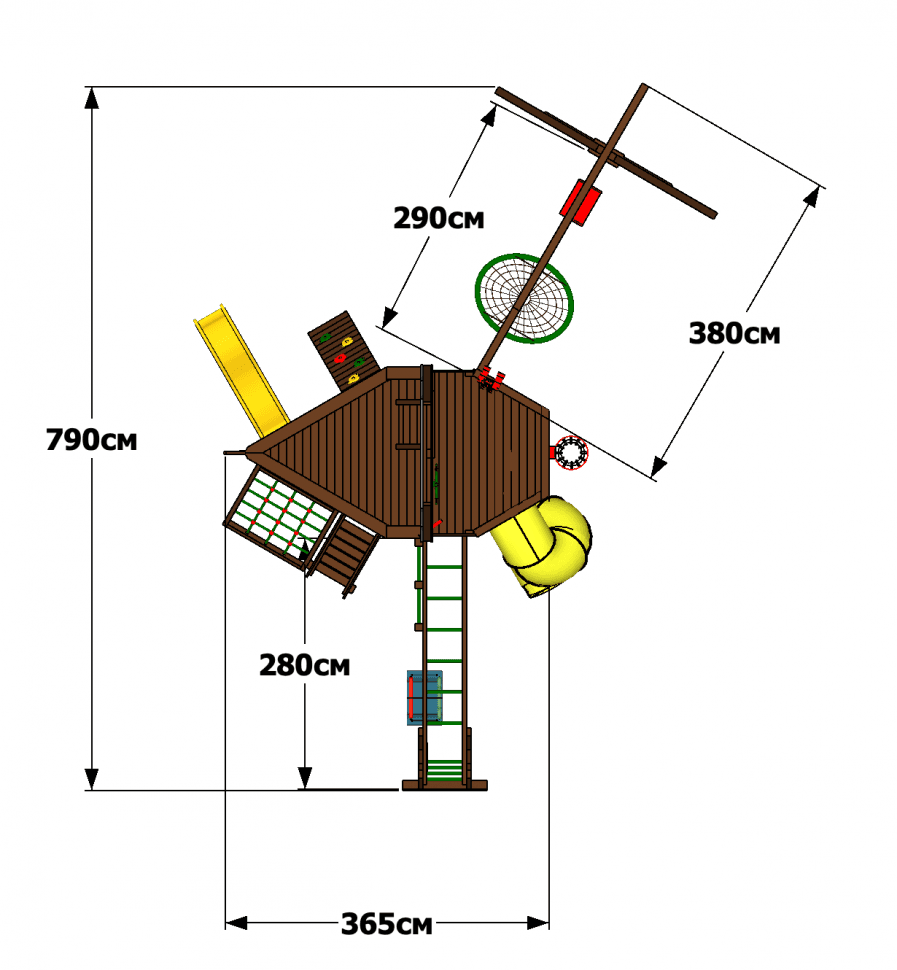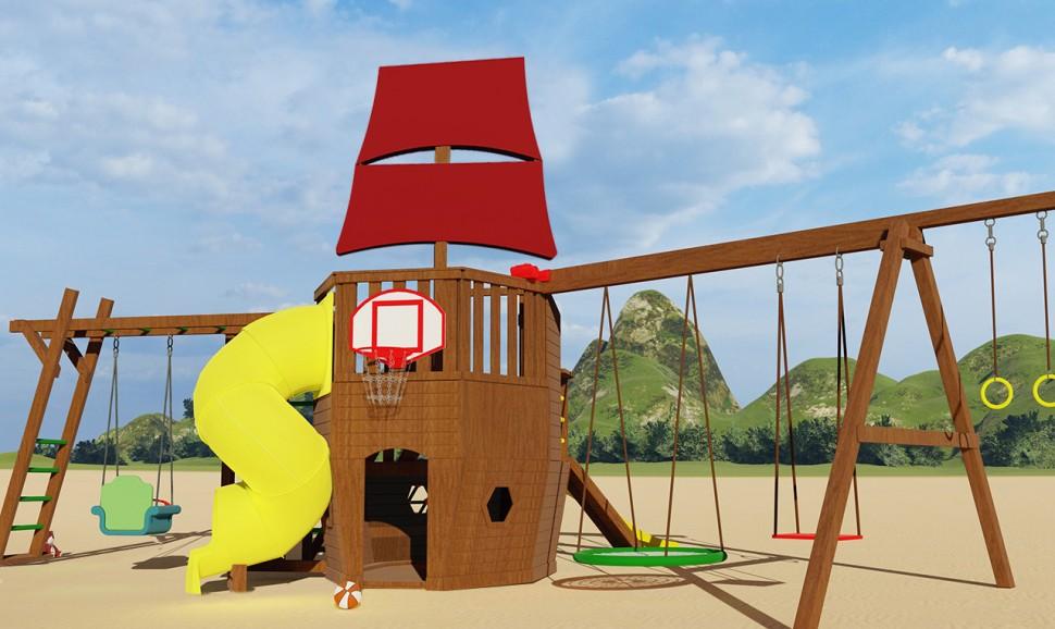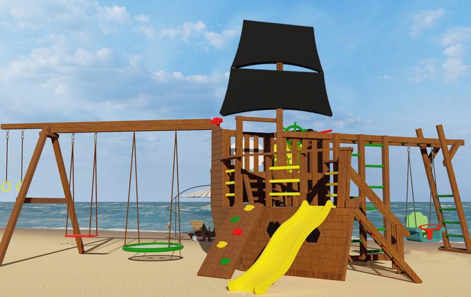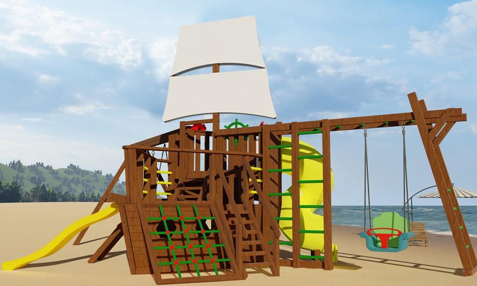 Детская площадка Princess of the sea 4 это комплекс из двухуровневого игрового центра в виде корабля. Изготовлен из карельской сосны первого сорта. Тщательная шлифовка каждой детали делает покрытие абсолютно гладким и безопасным к применению. Все детали площадки покрашены методом окунания в краску, что обеспечивает ровный слой краски, которая предотвращает негативные последствия от внешних воздействий и долговечность. Большой игровой центр включает в себя несколько модулей и предназначен для общественного пользования. Модуль рукоход с качелями для детей младшего возраста. Модуль «шведская» станка для подходит для детей среднего возраста. Качельная балка с двумя качелями заинтересует детей от 0 до 16 лет. Комплектация Яхта (Принцесса моря 4): - Площадка в виде корабля - Каюта (домик с полами) - Иллюминаторы (окошки) - 5шт - Мачта с парусами (цвет на выбор) Белый, Бордовый, Черный - Безопасная лестница с перилами - Канатная стенка - Горная стенка с пластиковыми зацепами - Баскетбольное кольцо с сеткой - Бинокль - Подзорная труба - Руль для детской площадки - Горка труба с высоты 145см - Горка прямая с высоты 90см - Модуль "Шведская стенка" - Модуль "Рукоход" с качелями "трансформер 3 в 1" - Анкера для крепления в грунт - Подробная инструкция по сборке - Крепеж Качельная балка (290см) с качелями: - Качели лодочка - Качели «гнездо» (диаметр 1 метр) - Дополнительный модуль «гимнастические кольца»(+80см к качельной балке) Размеры: - Длина - 790см - Ширина - 365см - Высота палубы - 90см - Высота второго этажа - 145см - Высота мачты - 395см Размеры каюты: Ширина 150см Длина 120см Высота 145см Данные для доставки: Вес 780кг Объем 3,2м3, 13 мест
