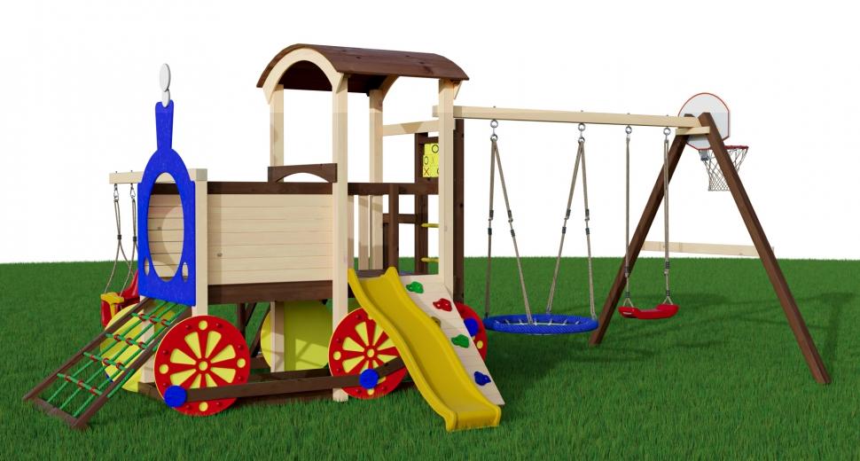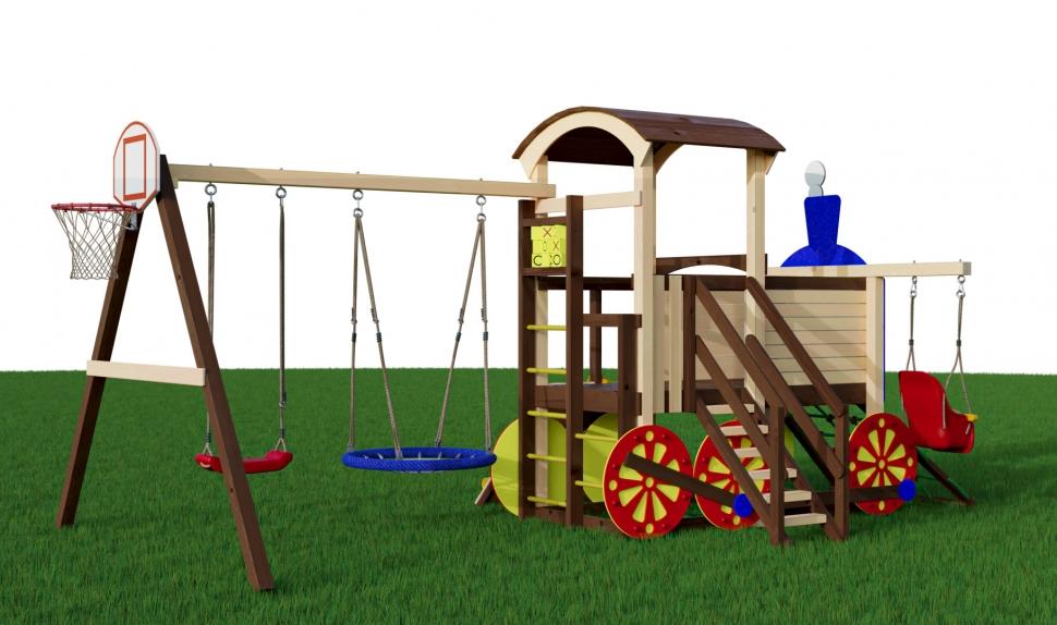 Паровозик «CRUISER 2» – отличный игровой комплекс для детской площадки. Он рассчитан на 5-6 одновременно играющих детей в возрасте от 3 до 14 лет. Конструкция игрового комплекса устойчива, изготовлена из экологически чистых материалов, все соединительные элементы травмобезопасны. Детская площадка оснащена горкой, подвесным сеткой, двумя видами качелей, скалодромом-сеткой и модулем с кубиками. Яркий привлекательный дизайн игрового комплекса не оставит равнодушным малышей и подарит массу положительных эмоций от игр и спортивной активности. Купить товар можно на нашем сайте. С доставкой в любую точку страны. Комплектация CRUISER 2 Основная игровая башня в виде паровоза Горка пластиковая с высоты 90см Горная стенка с пластиковыми зацепами Канатная стенка (спереди) Малая качельная балка с качелями «со спинкой» Безопасная лестница с перилами Шведская стенка с лестницей на игровую платформу Модуль «крестики - нолики» Баскетбольное кольцо с сеткой Модуль "качели" с качелями "Гнездо" диаметром 1м и качелями "Прямые" 40см Длина качельной балки - 290см В комплекте подробная инструкция для самостоятельной сборки и анкера для крепления к поверхности