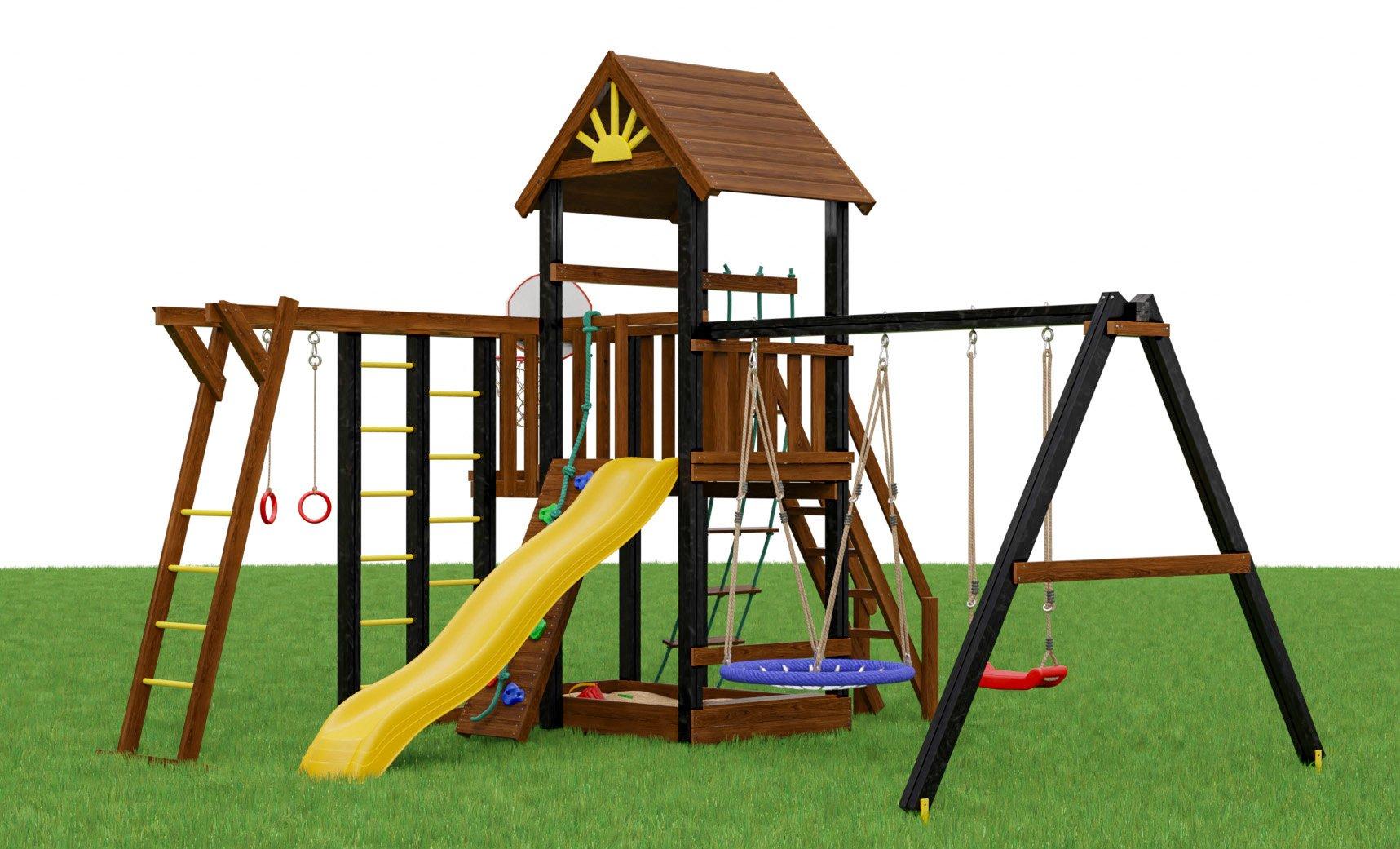 Ищете компактную уличную игровую площадку с оптимальным количеством модулей? Модель «Марк 2» устроит на 100% и станет дополнением загородного участка. Кроме традиционных модулей, которые есть во всех площадках серии «Марк», конструкция дополнена рукоходом и гимнастическими кольцами, а это новые возможности для развития мышц спины и рук ребенка. Игры на качелях, горной стенке с канатом, игры с баскетбольной мячом позволят улучшить работу вестибулярного аппарата, укрепят мышцы ног и всего тела. Несущие стойки площадки выполнены из массива сосны, качели - сборный брус 90х95мм. Рекомендуем купить детскую площадку «Марк 2» в нашем интернет-магазине. В комплекте с ней идут анкера для установки на грунте, крепежи и инструкция по сборке. Также вы можете заказать профессиональную сборку. Комплектация детской площадки "Марк 2" : Игровая башня с деревянной крышей и «Солнышком» Удобный пластиковый скат (3 метра) цвет на выбор Качели «гнездо» (цвет на выбор) Качели «Прямые» (цвет на выбор) Песочница с лавочкой и спинкой (без песка) Горная стенка с канатом Баскетбольный щит с сеткой Шведская станка двойная Веревочная лестница Безопасная лестница с перилами Металлические анкера для крепления к грунту Крепеж Подробная инструкция по сборке Рукоход Кольца гимнастические Информация для доставки: Количество упаковок (мест) - 8шт Объем - 1.7м3 Вес - 275кг Дополнительно: Крышка на песочницу съемная из двух половинок: 9500р