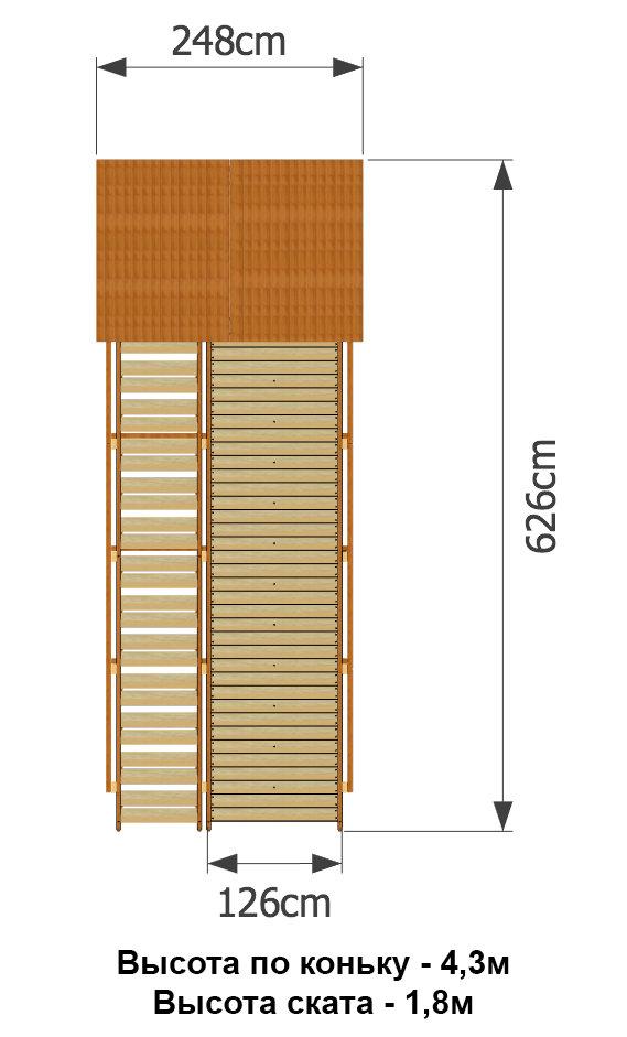 Любимым увлечением детей в зимний период является активная игра на улице, но очень часто проблематично выбрать площадку, на которой можно весело и безопасно провести свободное время. Зимняя горка «Норд-1» - один из лучших способов обеспечить ваше чадо в холодное время года интереснейшим и увлекательнейшим опытом. Зимняя горка «Норд-1» выполнена в невероятно эстетичном формате, поэтому она станет превосходнейшим дополнением свободного пространства перед домом. Отличает горку «Норд-1» большой размер, обеспечивающий данную игровую зону вместительностью, что позволит детям играть со своими друзьями в комфортабельных условиях. Горка выполнена из высококачественных пород деревьев, что обеспечит ей уникальностью долговечность и, соответственно, безопасность во время игрового процесса. Купить «Норд-1» вы можете в нашем интернет-магазине, который располагает огромным выбором игровых площадок и балует покупателей экономичными ценами. Размеры: Высота горки по коньку - 4,3м Ширина горки - 2,3м Длина горки - 6,2м Размеры ската: Высота ската - 1,8м Ширина ската - 126см Длина ската - 5метров Данные для доставки Объём 3 м3 Вес 500кг