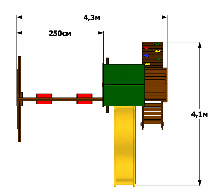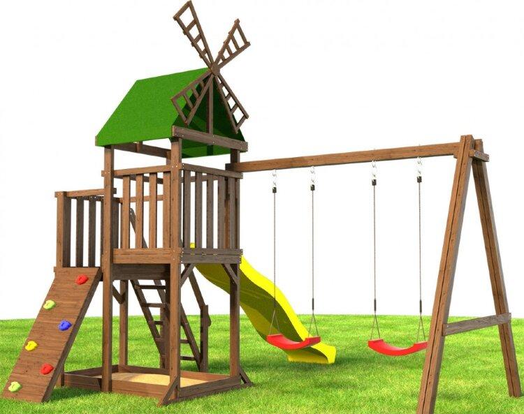 Безопасная игровая площадка «Мельница классик» станет оригинальным дополнением придомовой или общественной территории. Изюминка конструкции — башня, увенчанная стилизованными мельничными лопастями. Защиту обеспечивает прочный яркий тент, по желанию заказчика он может быть заменен на деревянную крышу. Ограждение — высокие перила. Наверх ведет широкая лестница и горная стенка с разноцветными зацепами, вниз — пластиковый скат. Пара качелей — дополнительное веселье. Купить игровую площадку «Мельница классик» следует за прочность и долговечность. Комплекс изготовлен из карельской сосны I сорта — природный материал выдерживает любые капризы погоды. Окраска производится методом полного погружения, что исключает наличие непрокрашенных участков. Размеры: Длина - 4,1м Ширина - 4,3м Высота игровой платформы (спуска с горки) - 1,45м Высота всей конструкции - 3,9м Комплектация: Игровая башня в виде мельницы Песочница (под игровой башней) Дополнительная опция: (крышка для песочницы) Качели (каркас) (сечение 90х90) длина качельной балки - 250см Качели "лодочка" - 2шт Горка 2,9 метра с высоты 1,45метра Балкон Лестница со ступенями и перилами Крыша тентовая Дополнительная опция: Деревянная крыша Горная стенка (6 выступов для скалолазания) Анкера металлические для крепления в грунт (4шт) Подробная инструкция по сборке Данные для доставки: Вес 170кг Объем 1м3 5 мест (4 коробки + горка) Размеры мест: 270х25х25см - 2шт 140х30х30см = 1шт 60х40х2,9м - горка (1шт) 40х40х25см - коробка с фурнитурой Дополнительная опция: Деревянная крыша + 8000р к стоимости Деревянная крышка на песочницу раскладная (на петлях) образующая по краям две лавочки со спинками + 10000р к стоимости (Лавочки шириной 30см, спинка высотой 30см) Деревянная крышка на песочницу съемная с лавочками по краям шириной 30см. Две съемные крышки (50х80см каждая) + 7800р к стоимости